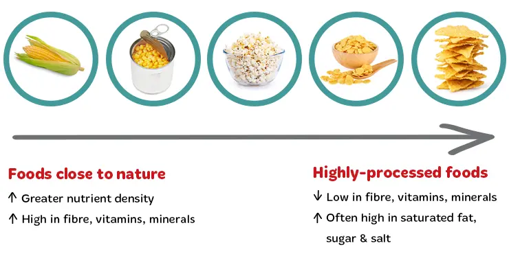 • Less explicit about food processing levels.